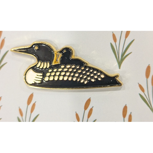 Enamel Loon with Chick Pin. Gold tone with the black and white enameled Loon and Chick.