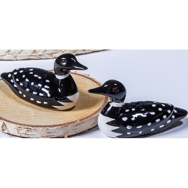Complement your cottage decor with this handsome set of Loon Salt and Pepper Shakers. Crafted out of ceramic, these beautifully painted salt and pepper shakers look just like adult Loons floating atop your table — perfect for the cottage kitchen or anywhere.